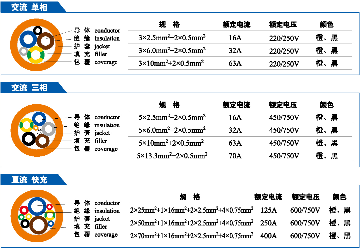 電動汽車充電電纜是一種用于電動汽車與充電樁或電源插座之間的連接軟電纜,無氧銅導(dǎo)體保證了導(dǎo)電效果,TPE絕緣材料具有柔軟,強度高,護套采用高性能TPE 其有耐氣候,耐高.低溫,耐摩擦等特征。