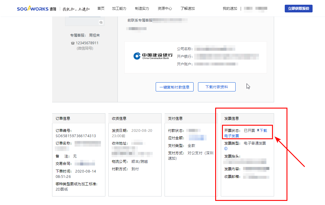 4. 進(jìn)入訂單詳情頁(yè)面,在【發(fā)票信息】處,點(diǎn)擊【下載電子發(fā)票】即可
