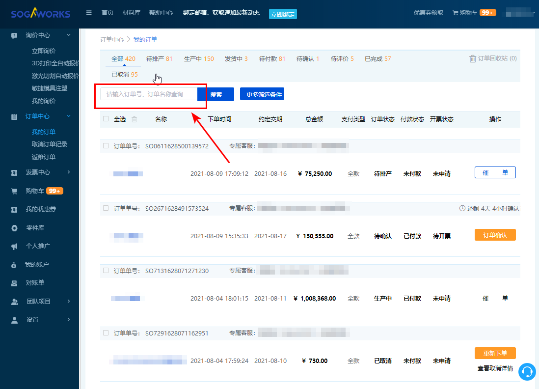2. 點(diǎn)擊【訂單中心-我的訂單】,進(jìn)入我的訂單頁(yè)面